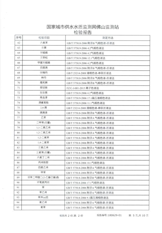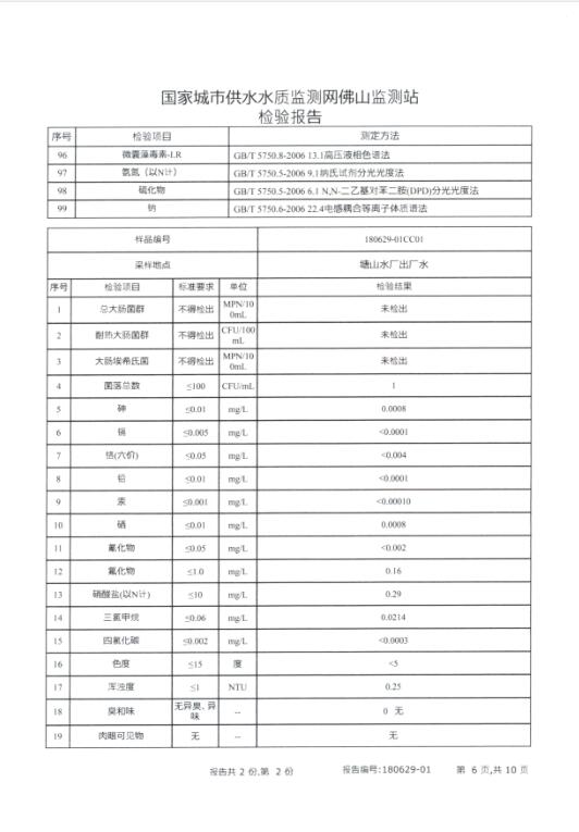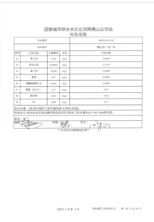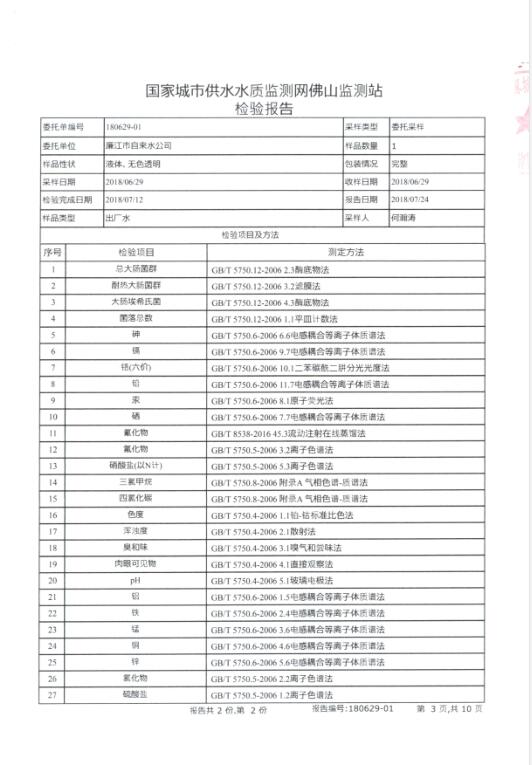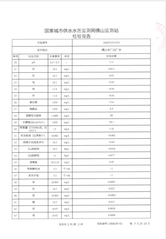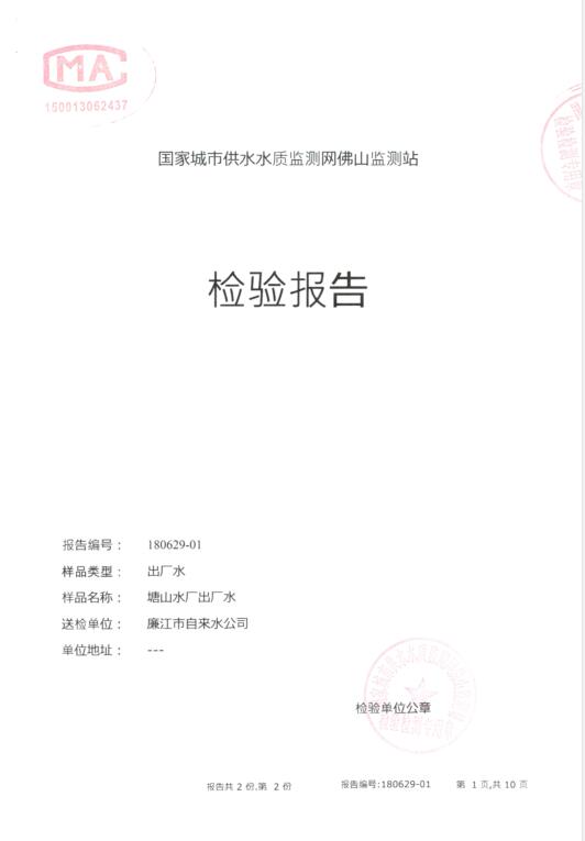 國家城市供水水質監(jiān)測網佛山監(jiān)測站檢驗