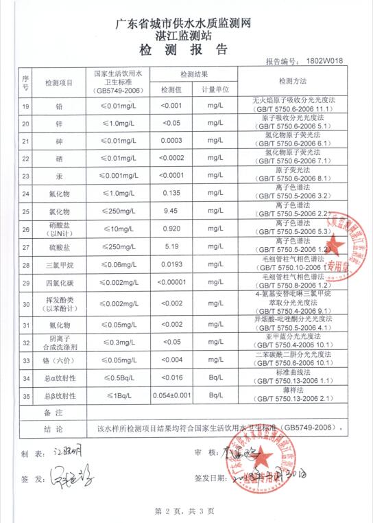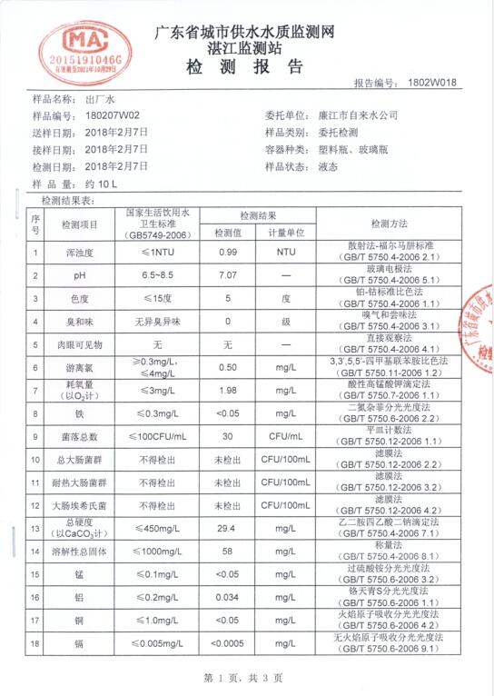 廉江市自來水有限公司出廠水檢驗數(shù)據(jù)(