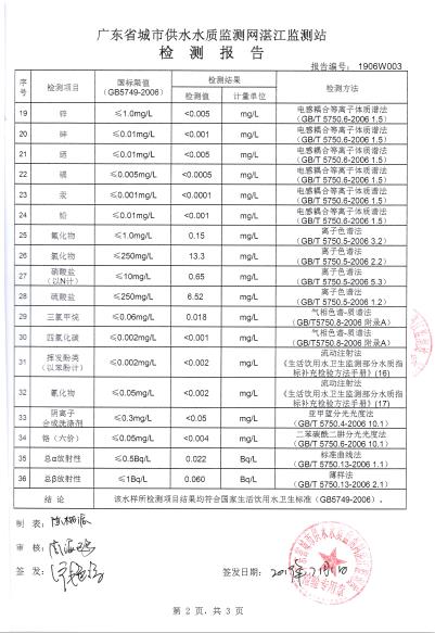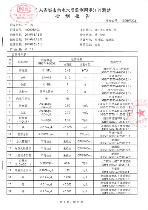廉江市自來水有限公司出廠水檢驗(yàn)數(shù)據(jù)(